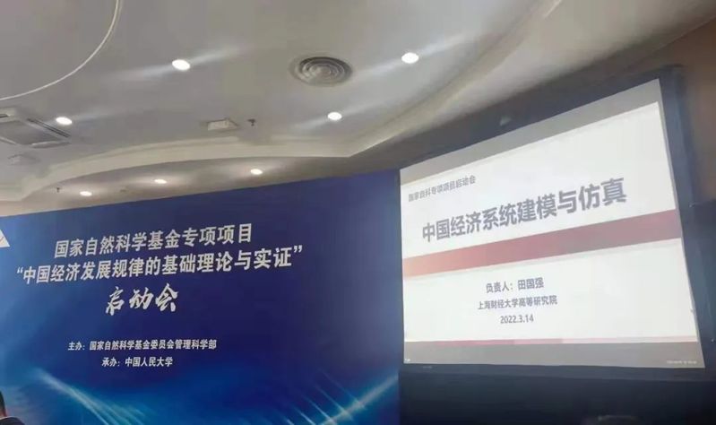 我院田国强教授作为“中国经济系统建模与仿真”项目(批准号:72141303)负责人代表课题组做了汇报。本项目致力基于中国国情、中国特色、中国经济特征,构建“微观行为-中观现象-宏观涌现”的复杂经济系统模型,并在数字虚拟世界中对复杂现实经济系统实现推演、试错和预估,以此揭示不同经济主体之间的相互作用效应及其总体(宏观)涌现效应;解释中国经济发展现象及其演化特征;定量分析经济政策的影响机制、路径、持续性以及对社会福利的冲击;为未来经济政策的制定和实施,提供智能化分析和评估的方法论与工具箱。对外经贸大学国际经济贸易学院党委书记曹小勇教授、湖北经济学院财经高等研究院副院长潘娜副教授代表课题组现场参会,陈媛媛教授、陈旭东副研究员等10余位子课题负责人和成员线上参会。