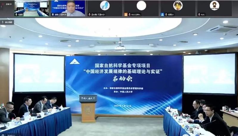 2022年3月14日,国家自然科学基金专项项目“中国经济发展规律的基础理论与实证”启动会在中国人民大学举行。国家自然科学基金委管理科学部副主任刘作仪研究员主持开幕式,中国人民大学校长刘伟教授,基金委党组成员、副主任王承文研究员先后致辞。专项项目汇报环节由洪永淼教授、刘元春教授担任主持,林毅夫、田国强、王兆华、熊熊、倪红福、陈彦斌、仇焕广、郑新业、黄先海、都阳等就专项项目资助的10个课题组分别作汇报,全国政协经济委员会副主任宁吉喆等8位专项项目学术指导组成员进行了点评。
